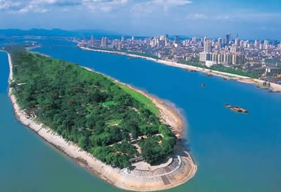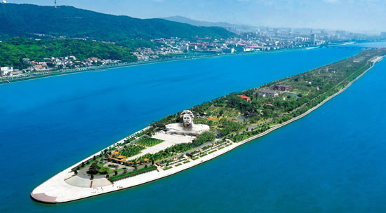 毛主席有一首《沁園春·長沙》:“獨(dú)立寒秋,湘江北去,橘子洲頭,看萬山紅遍,層林盡染”,這里所說的橘子洲就在長沙市區(qū)的湘江中心,是一個(gè)長約十華里的長島,是長沙市的重要名勝。