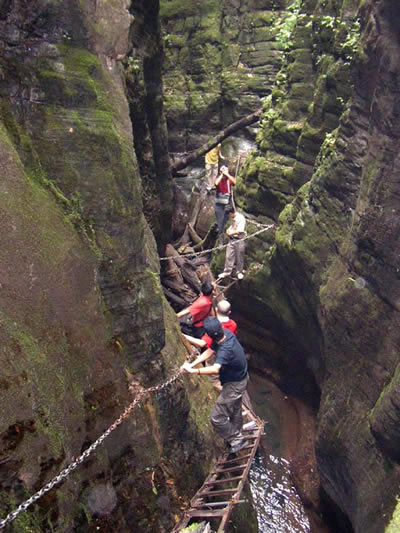 坐龍峽圖片 坐龍峽風景區(qū)位于古丈縣河西鎮(zhèn),與“芙蓉鎮(zhèn)”--王村一水之隔。經(jīng)由300萬年大自然的風吹、水蝕而成,一直隱逸于湘西茫茫十萬群山之中。它長約3500米,最大高差達300余米;寬處不足丈余,窄處僅容一人通過;谷內(nèi)絕壁縱疊,溪瀑橫懸,崖樹斜逸,異草遍坡。