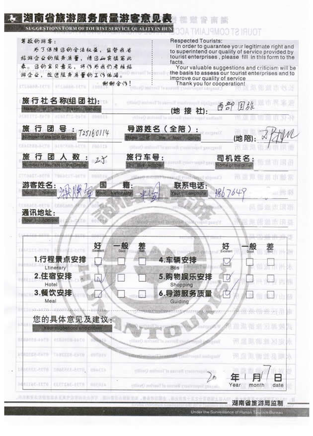 現(xiàn)在位置:首頁 -> 西部國旅->旅游質(zhì)量反饋 -> 2016-1-14 廣東梁女士一行25位貴賓 張家界、袁家界、天子山三晚三日游