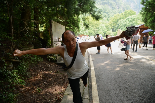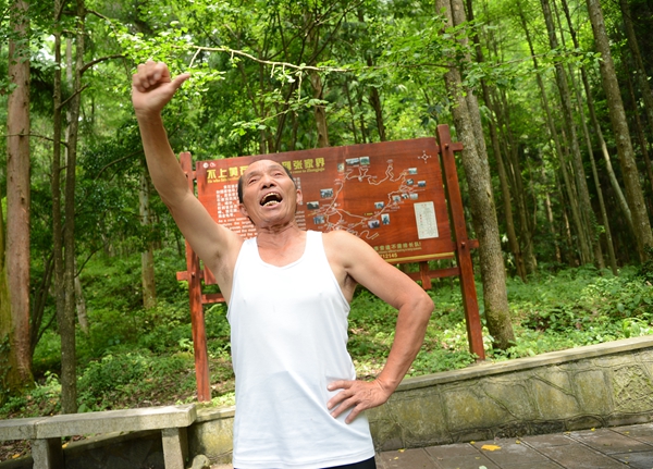 二是老人有個強健硬朗的身板。十多年前,趙如秋查出患有高血壓和腎結石,他就堅持每天在景區(qū)爬山鍛煉身體,結果還真的有效,不僅腎結石消除了,高血壓有所緩解,身體也結實得很。如今趙如秋老人雖然68了,但說話中氣十足,走路健步如飛,還能挑上150斤擔子徒步登上鷂子寨、黃石寨,沿路還能唱山歌。