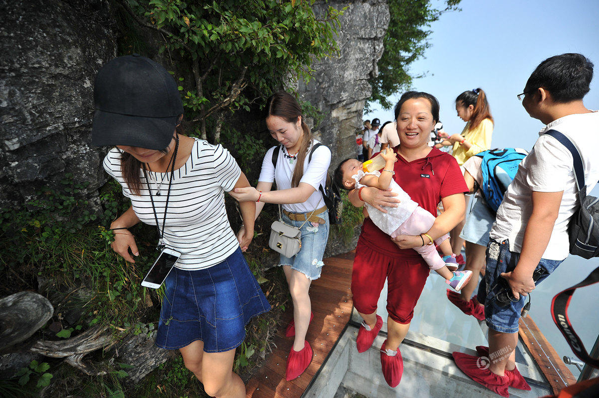 8月1日,天門山景區(qū)第三條玻璃棧道——盤龍崖玻璃棧道開通迎客。玻璃棧道全長100米、寬1.6米,因站在玻璃棧道上能俯瞰天門山99道彎盤山公路而得名“盤龍崖玻璃棧道”。該玻璃棧道以其絕壁凌空的恢弘氣勢和令人頭暈?zāi)垦5囊曈X感受備受游客青睞。