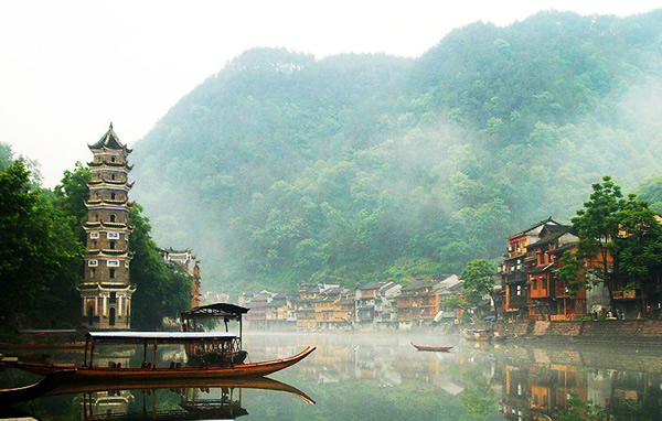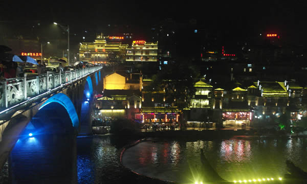 鳳凰古城是國家歷史文化名城,曾被新西蘭著名作家路易艾黎稱贊為中國最美麗的小城。這里與吉首的德夯苗寨,永順的猛洞河,貴州的梵凈山相毗鄰,是懷化、吉首、貴州銅仁三地之間的必經(jīng)之路。作為一座國家歷史文化名城,鳳凰的風景將自然的、人文的特質(zhì)有機融合到一處,透視后的沉重感也許正是其吸引八方游人的魅力之精髓。這座曾被新西蘭作家路易艾黎稱作中國最美麗的小城之一的“鳳凰古城”建于清康熙時,這顆“湘西明珠”是名副其實的“小”,小到城內(nèi)僅有一條像樣的東西大街,可它卻是一條綠色長廊。